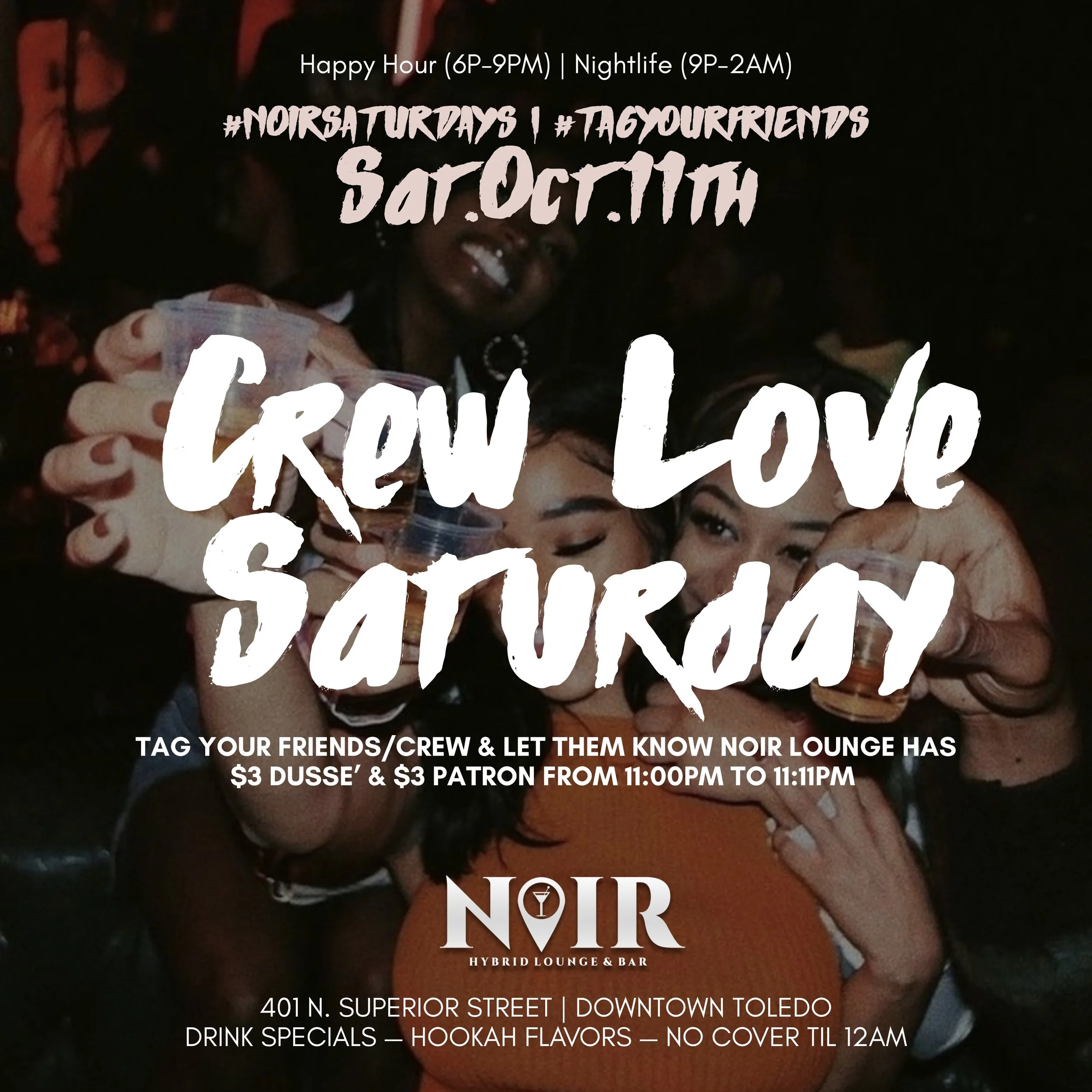 10.25 - Happy Hour (6PM-9PM) + Crew Love Saturday (9P-2AM)